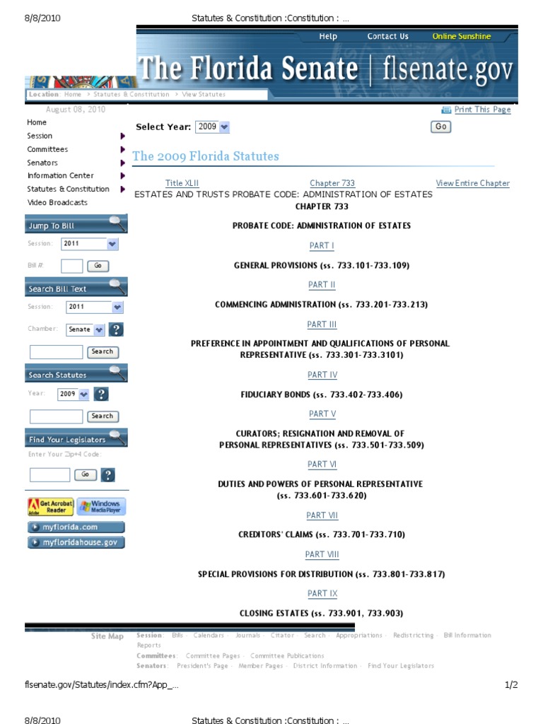 Chapter 733, Florida Statutes Bill (Law) Legal Documents Free 30