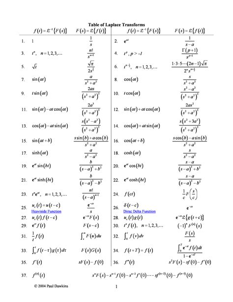 Table of Laplace Transforms Cheat Sheet by Cheatography Download free