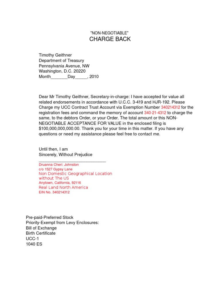 7 NEW Charge Back Letter No 2 Uniform Commercial Code Taxes