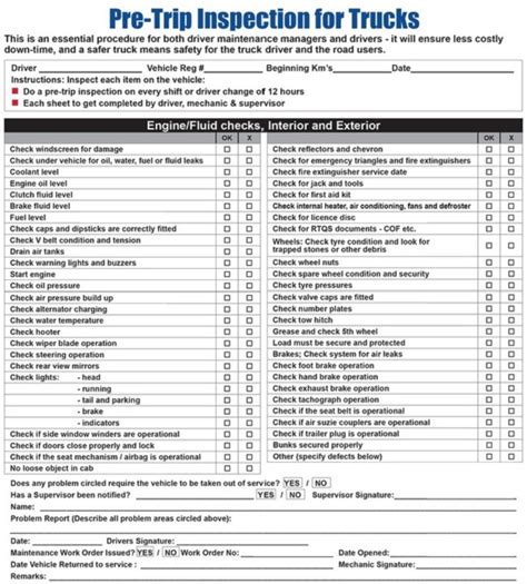 Pre Trip Inspection Free Printable Driver Vehicle Inspection Report