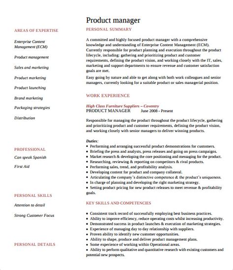 FREE 9+ Sample Product Manager Resume Templates in PDF MS Word