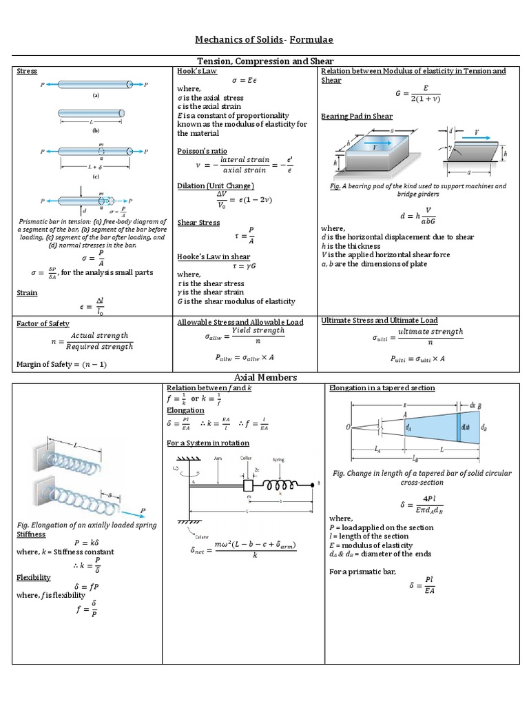 Solid Mechanics Formula Sheet - Web this collection of formulas is intended for use by foreign students in the course tmhl61, damage mechanics and life. Web fundamental mechanics of materials equations basic defi nitions average normal stress in an axial member f avg a average.