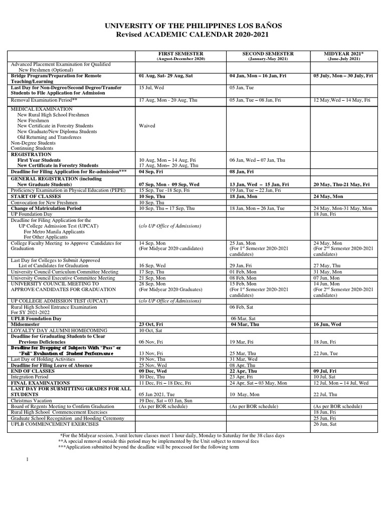 UP AcademicCalendar AY20202021 PDF Academic Term University